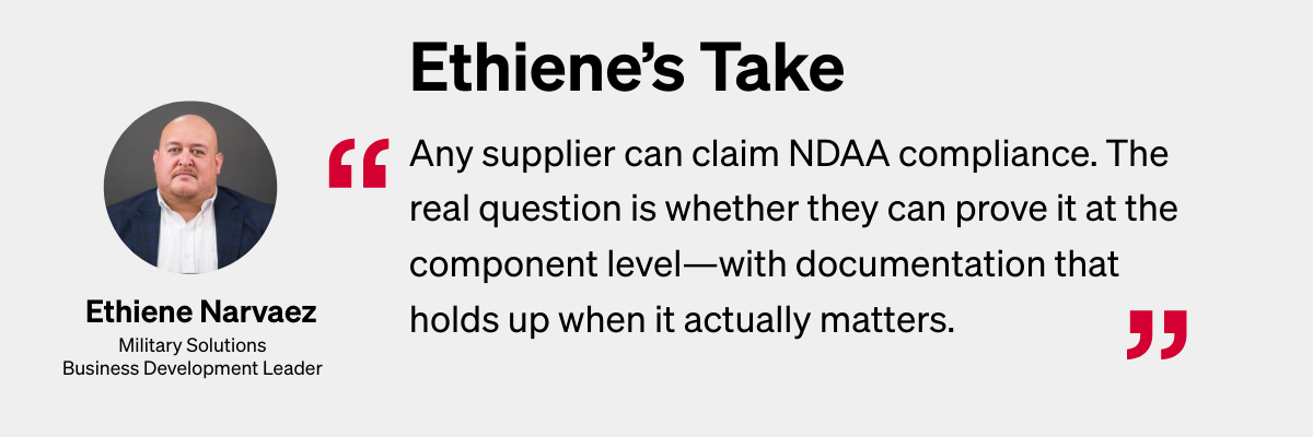 One adversarial semiconductor, one undisclosed firmware dependency, one documentation gap is all it takes to stall a project that’s otherwise ready to field.
