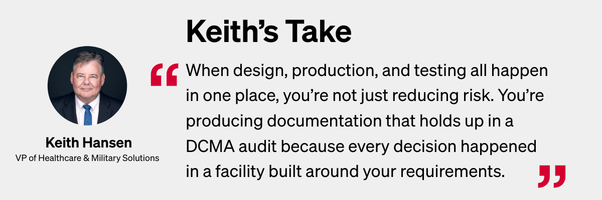 The most direct defense against adversarial content isn’t a compliance checklist. It’s a supplier who controls their own manufacturing process under a single domestic roof.