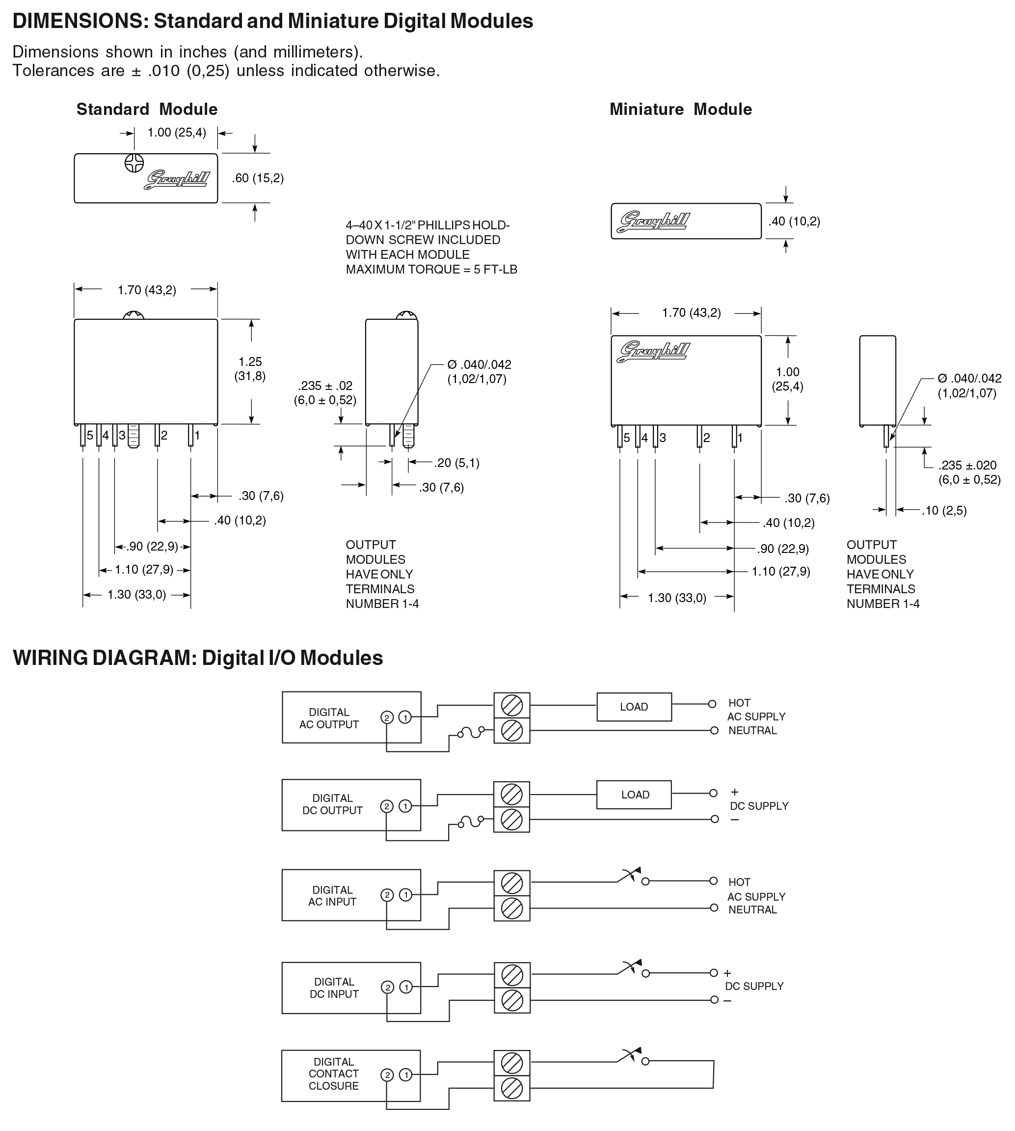 Module Type: Digital I/O Module Form Factor: Miniature Voltage Load: 100VDC/120VAC Nominal Logic Voltage: 24VDC |