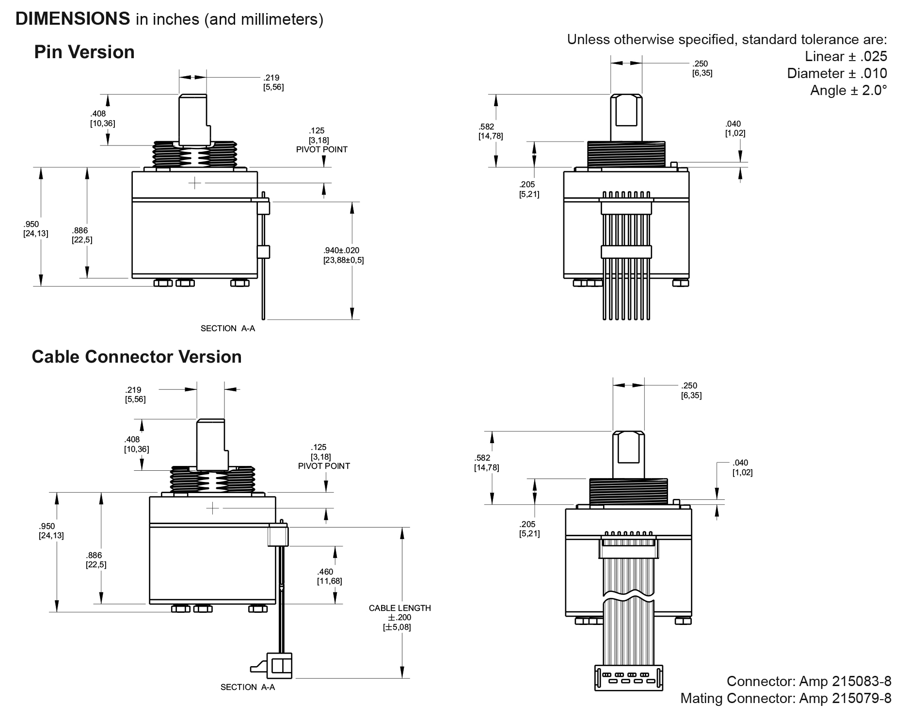 - Life Rating (cycles): 1M for rotary and pushbutton, 500K for joystick