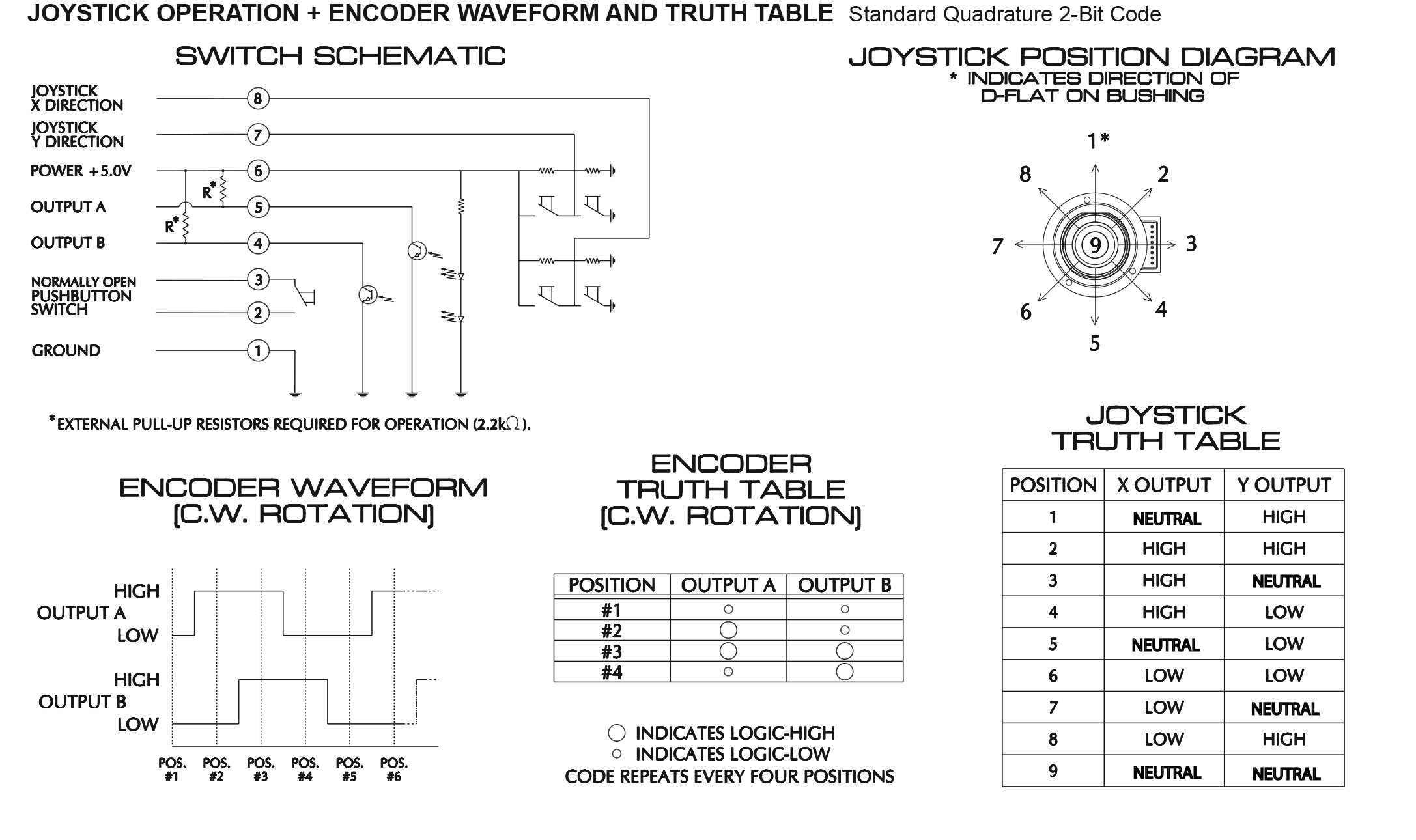 Encoder Angle of Throw: 3.5 Joystick Positions: 8 Output: Quadrature, Digital Voltage Shaft Diameter: Deck A (in): 0.25 |