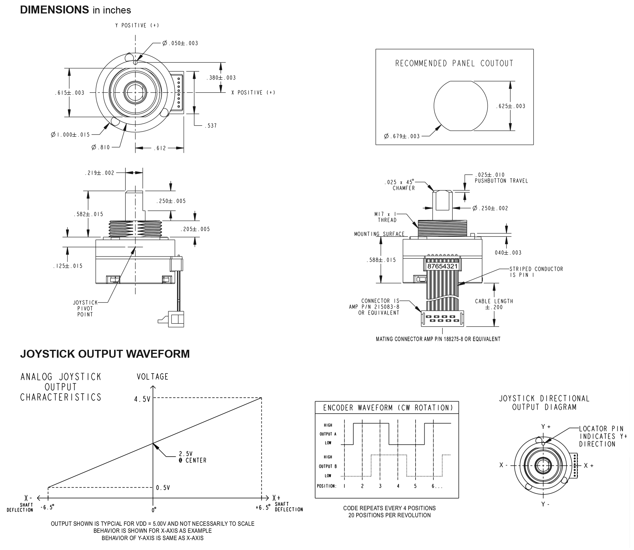 Encoder Angle of Throw: 6.5 Joystick Positions: All Way Switch Output: Quadrature Shaft Diameter: Deck A (in): 0.25 |