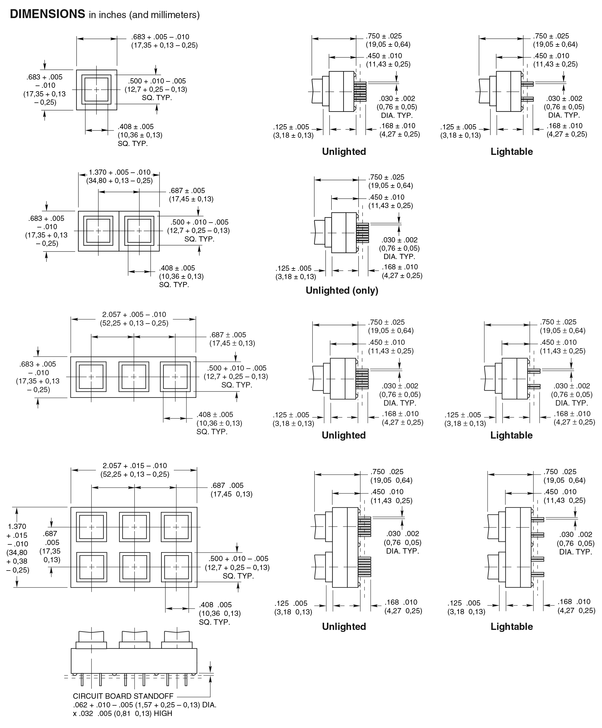 - Array: Single Button, 1×2, 1×3, 2×3