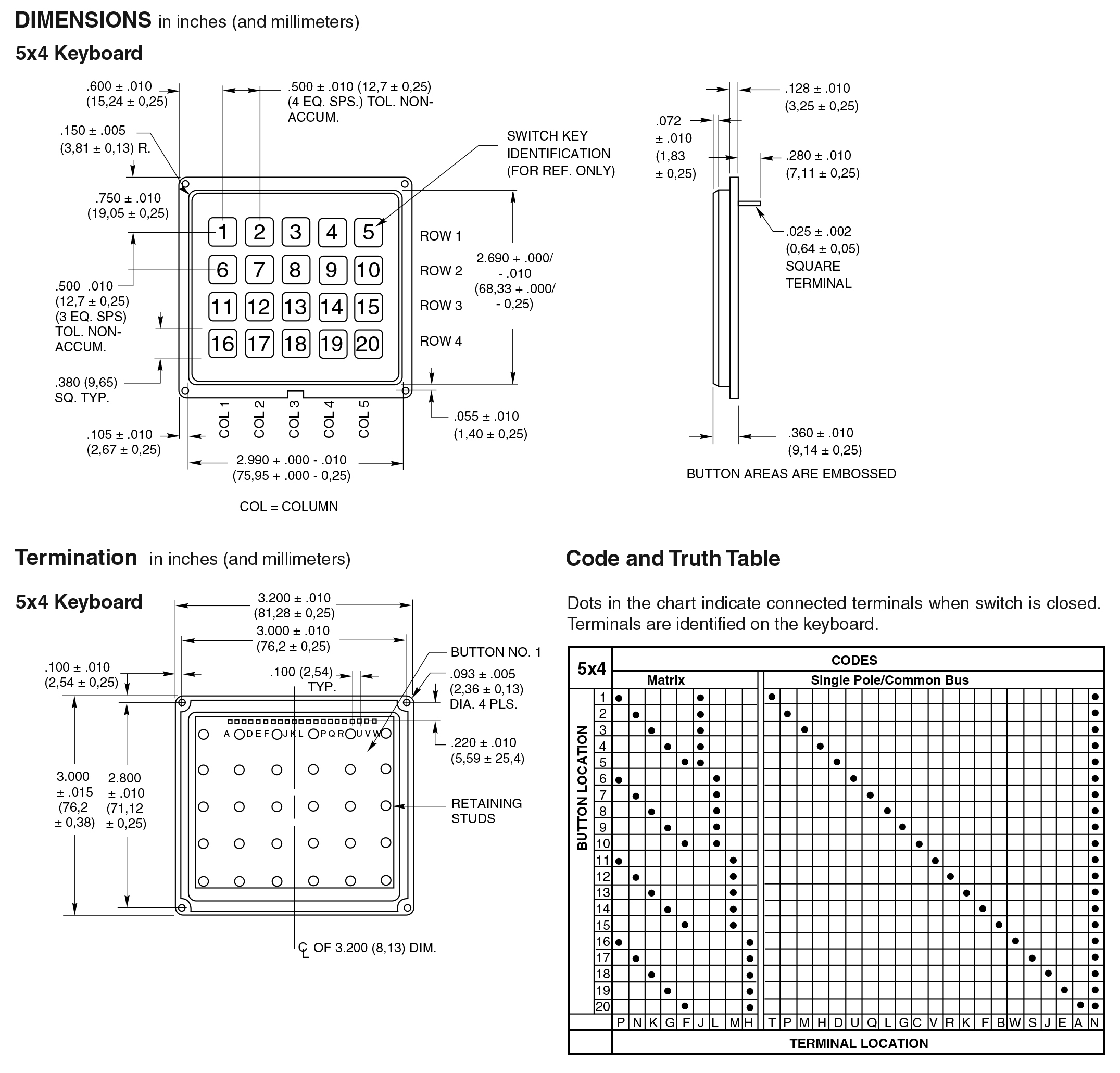 Configurations: 5x4 Circuitry: Matrix Maximum Switch Rating: 10 mA Mechanical Life Cycles: 3M |