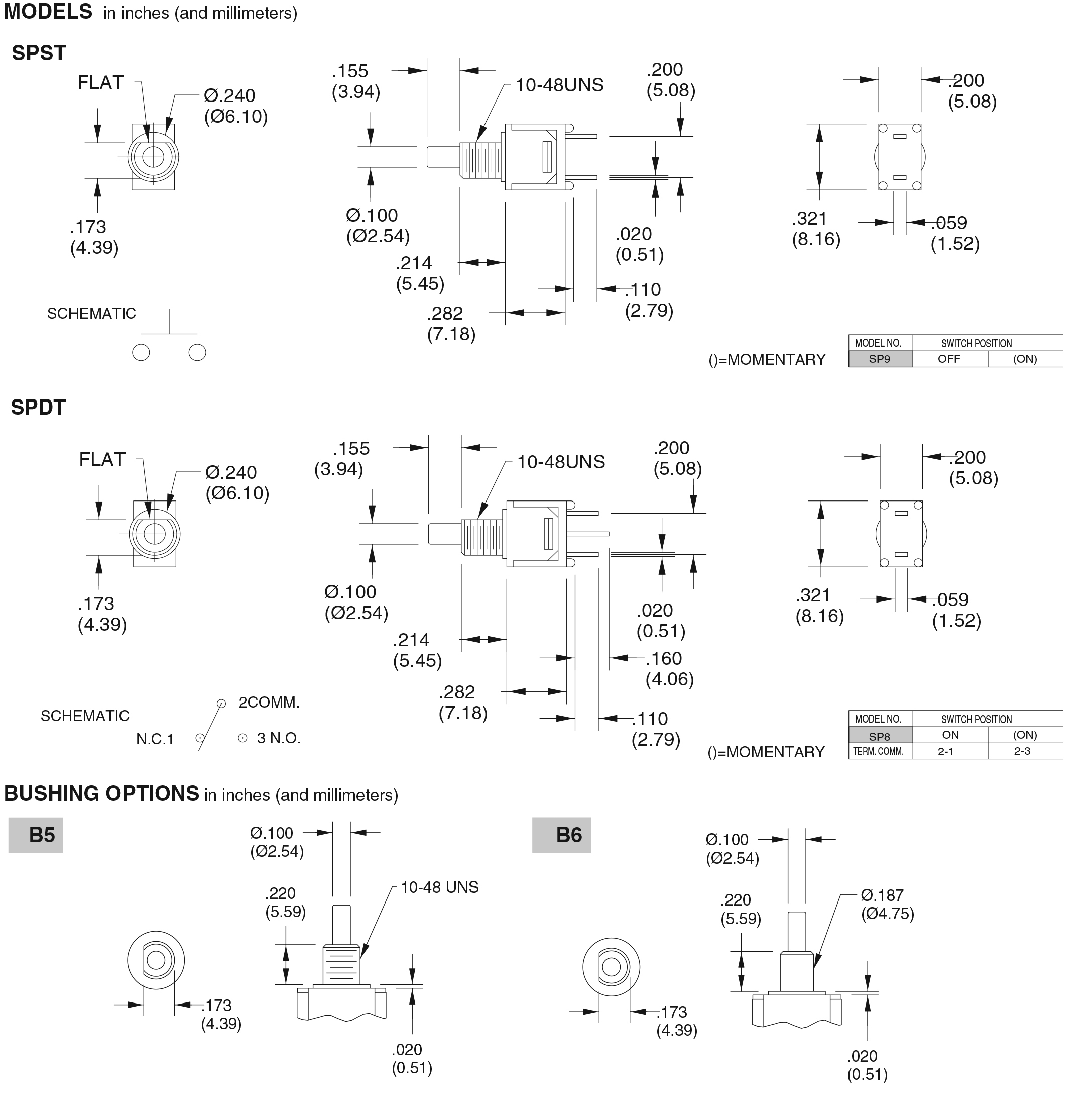 • Circuitry: SPDT