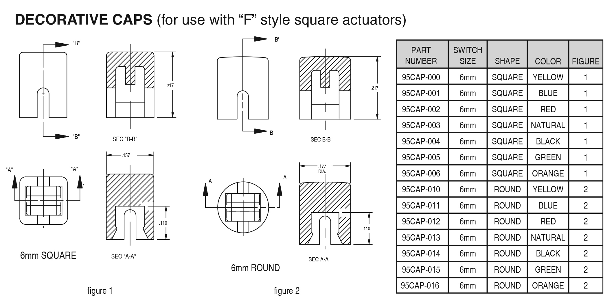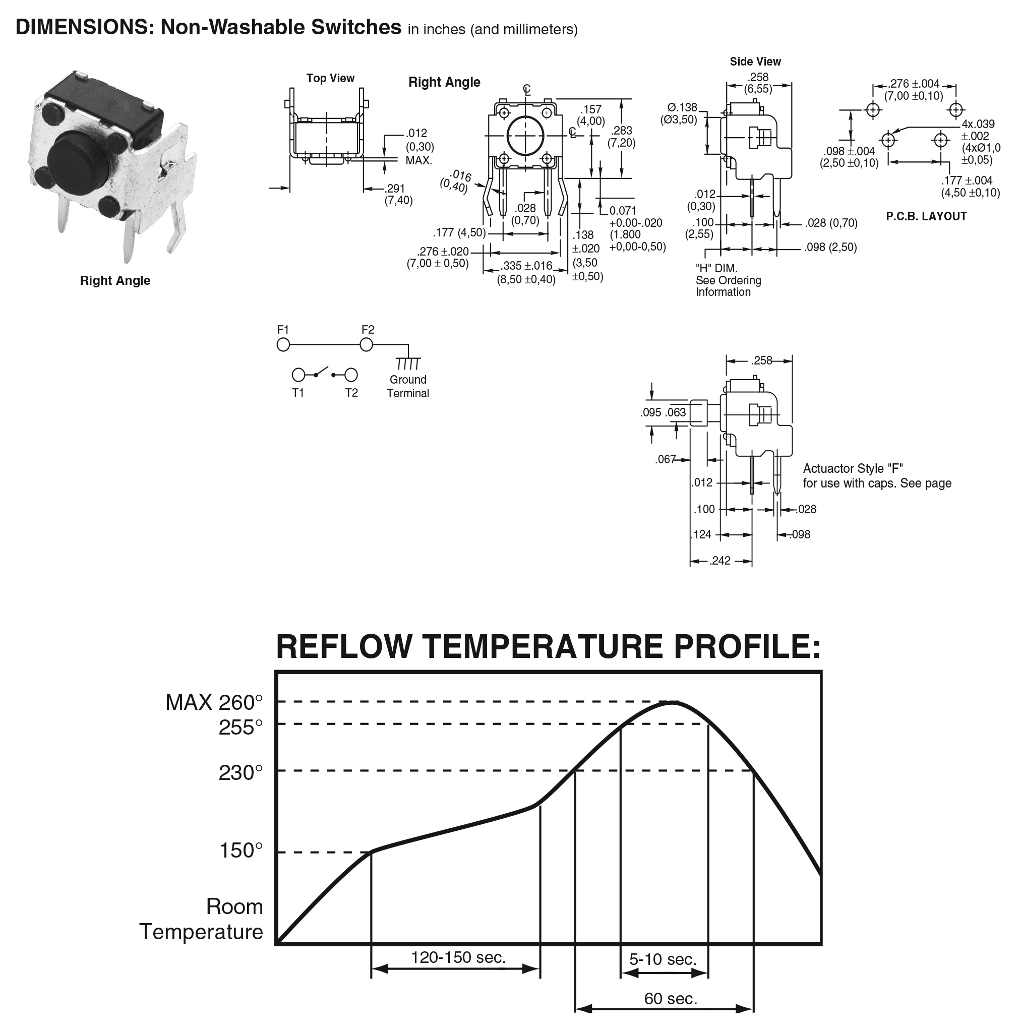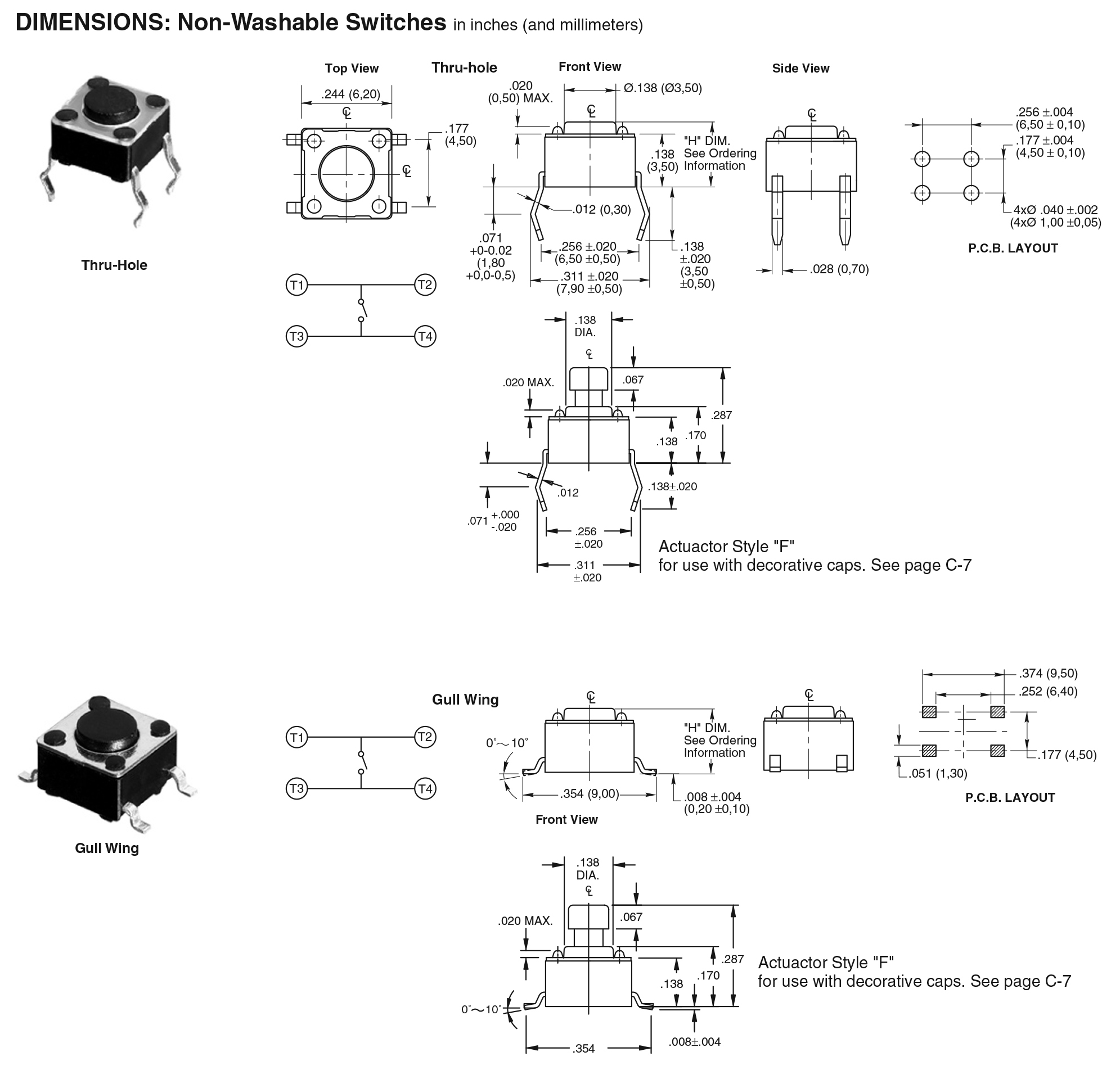 • Operating Force (grams): 100, 160, 260, 320, 520