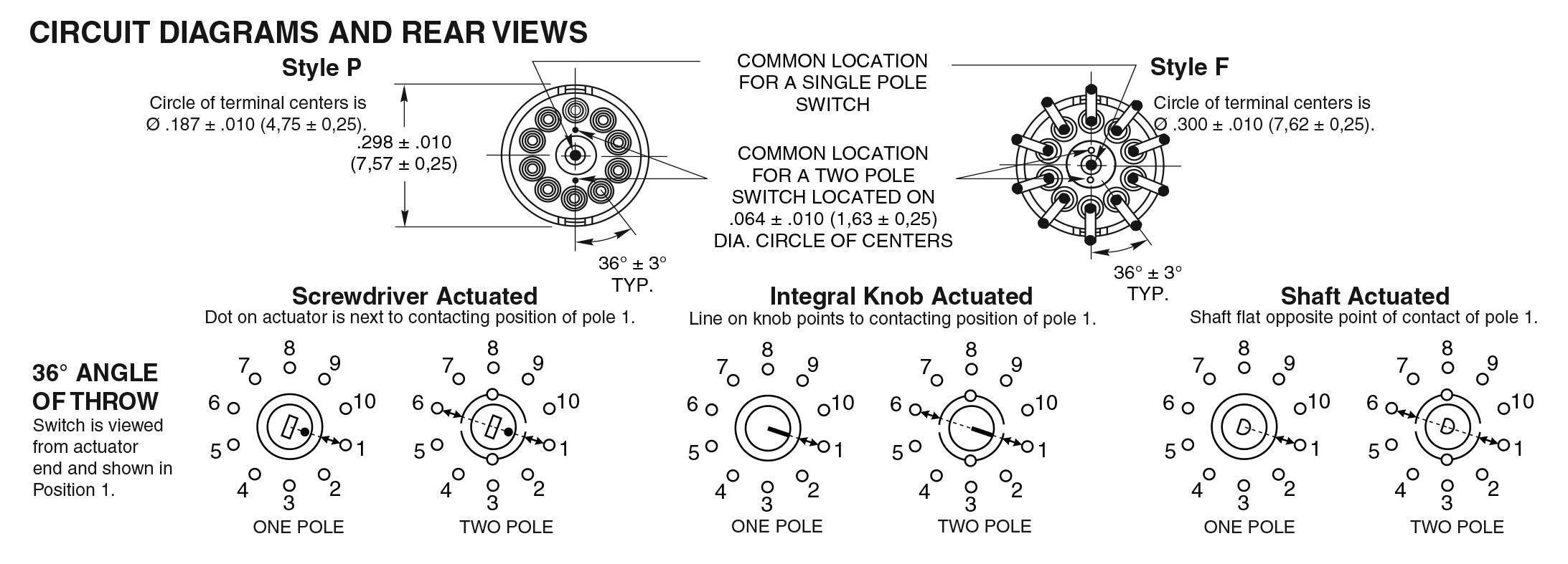 Output: Rotary Angle of Throw (°): 36 Positions per Pole: 10 Number of Decks: 1 |