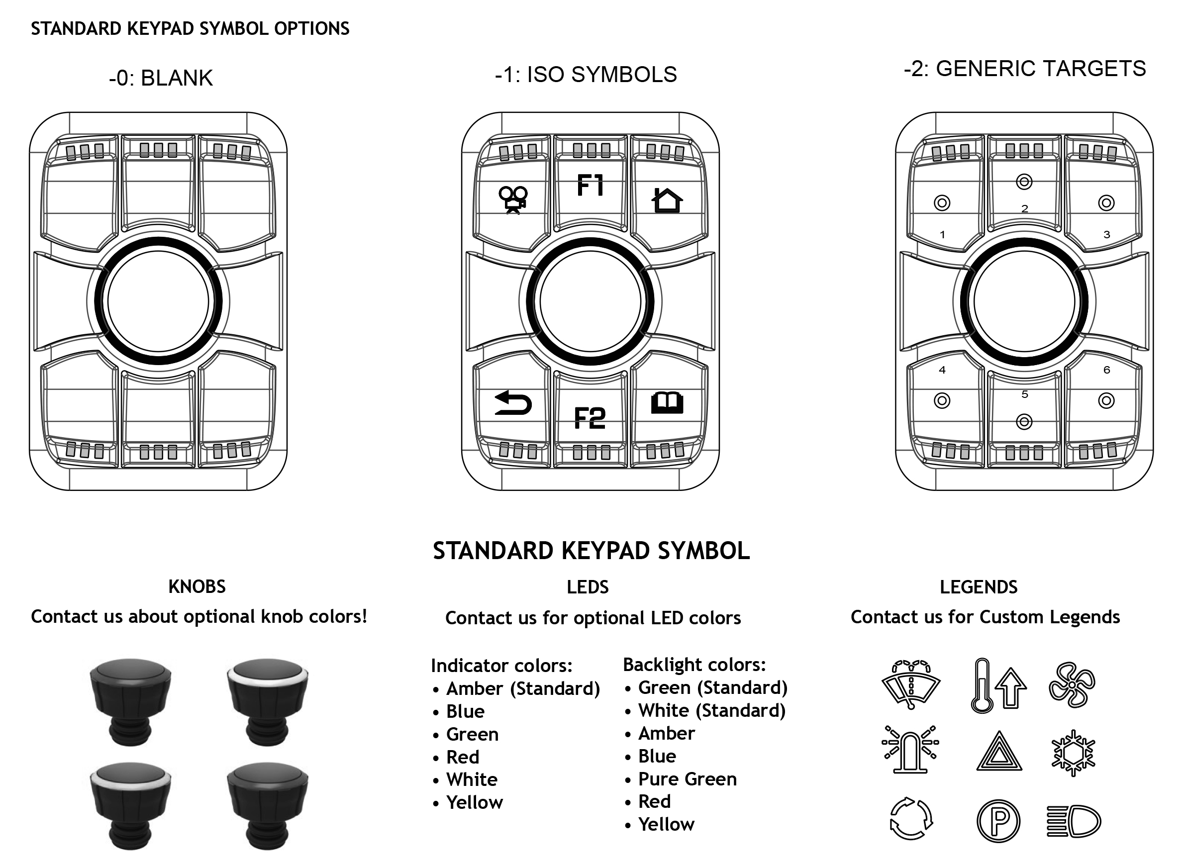 CAN Bus Protocol: J1939 Rotary Interface Type: Encoder # of Keypad Buttons: 6 Backlight Color: White |