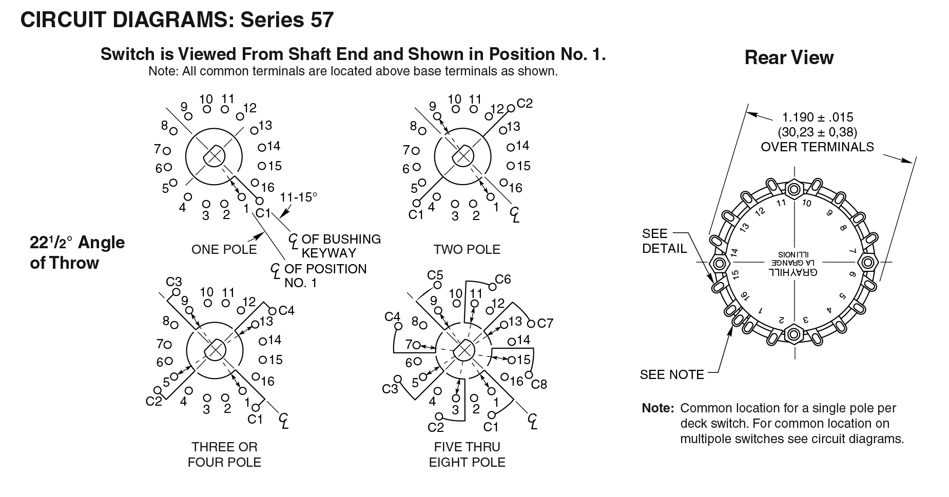 Output: Rotary Angle of Throw (°): 22.5 Positions per Pole: 2 Number of Decks: 1 |